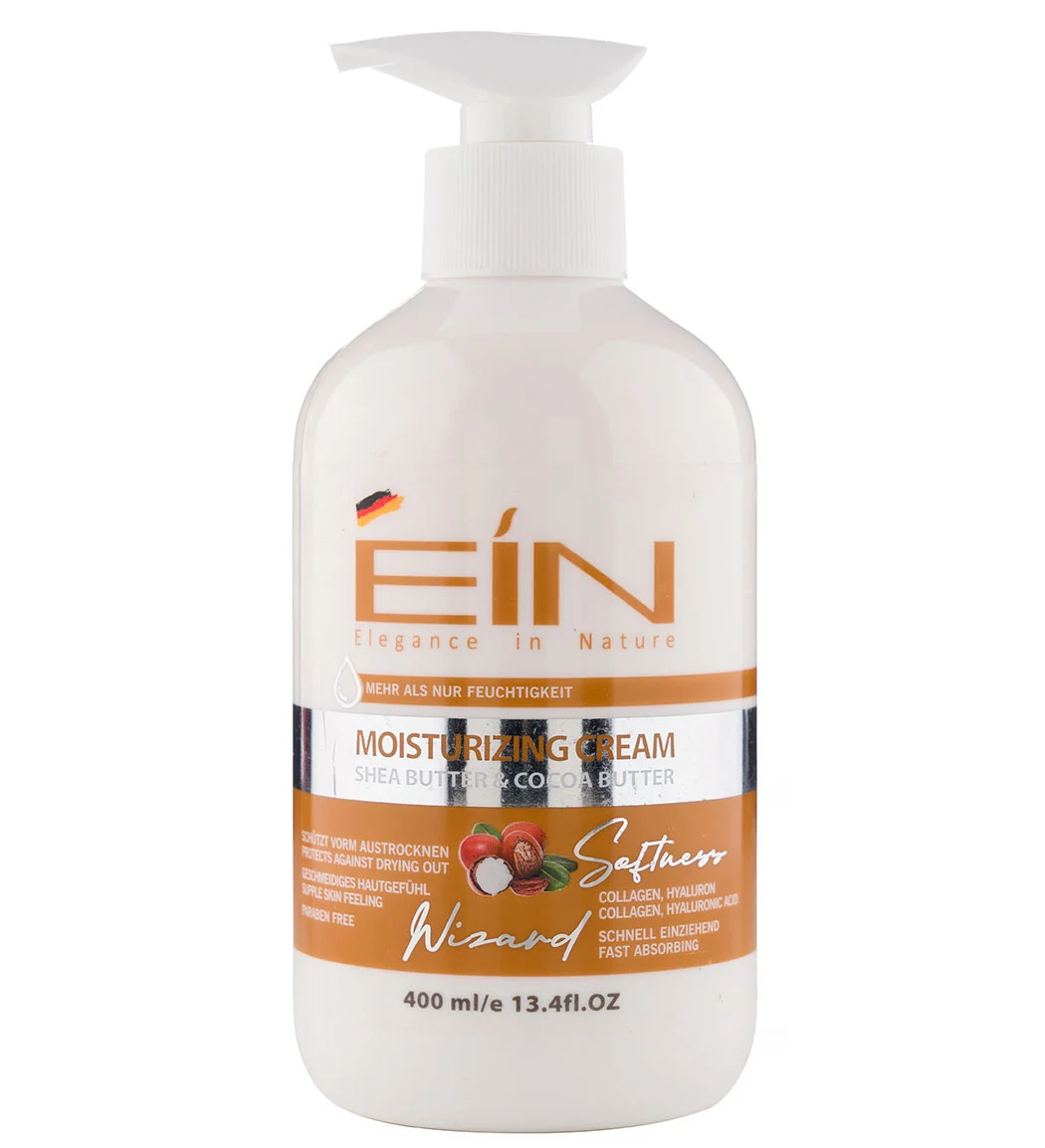 کرم نرمکننده و مرطوبکننده پمپی حاوی کلاژن و هیالورونیک اسید شی باتر و کوکو باتر ای آی ان 400 میلیلیتر Ein