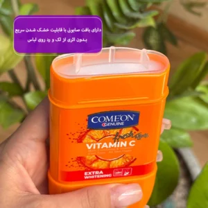 استیک صابونی ویتامین سی کامان با فرمولاسیون منحصر به فرد به کنترل موثر تعریق و بوی بدن همراه با روشن کنندگی تدریجی پوست زیر بغل کمک میکند.