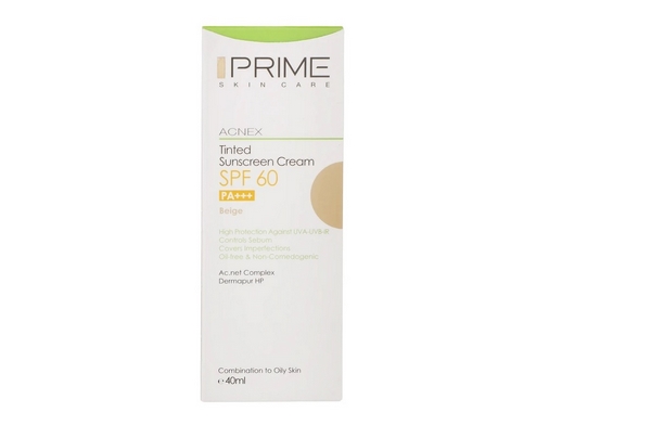 کرم ضدآفتاب SPF60 پوست مختلط تا چرب رنگ بژ پرایم 40 میلیلیتر Prime
